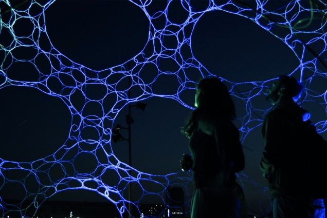 Part of this program includes a new commission, a show-stopping new site-specific installation by Loop.pH. Entitled ‘Atmeture’, the architectural light piece will be constructed on Letchworth’s Broadway Gardens, and will act as a centrepiece for the Festival. Constructed out of their innovative archilace technique, ‘Atmeture’ will animate on key nights of the festival with the addition of transparent inflatable membranes, creating an effect of dynamic breathing architecture.